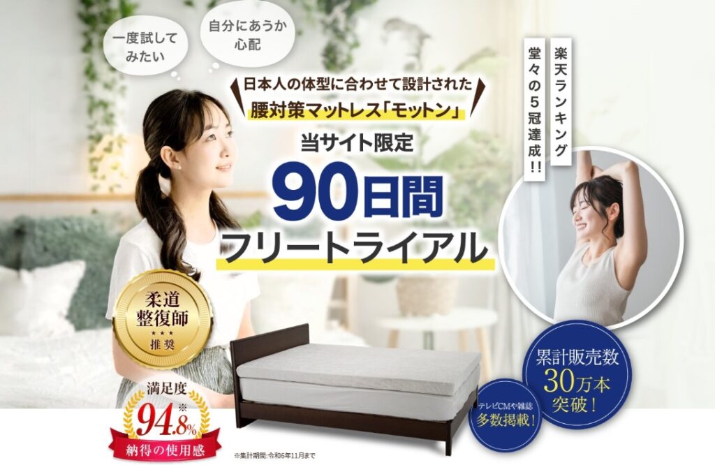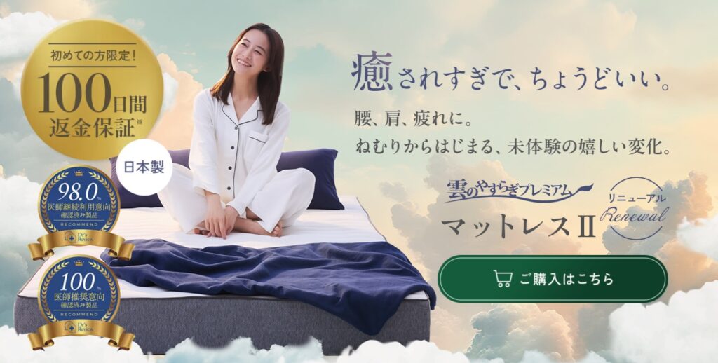 - 腰痛対策なら:雲のやすらぎ/モットン/NELL/マニフレックス