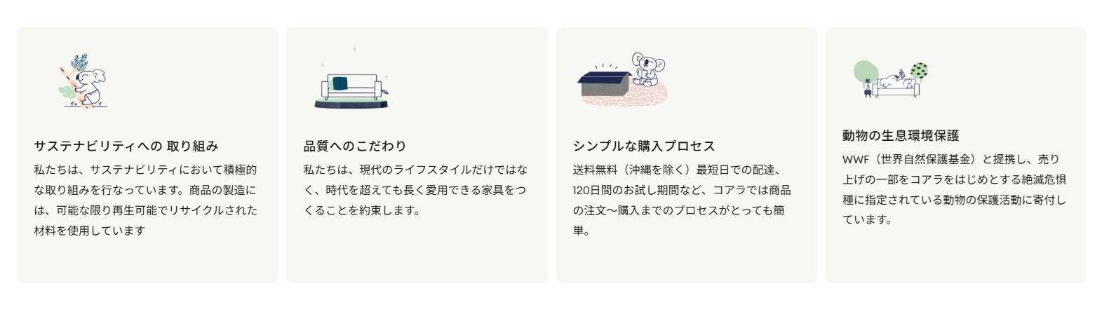 コアラマットレスの大きな魅力は、120日間のお試し&返品保証です。実際に使ってから判断できるので、初めてでも安心して購入できます。