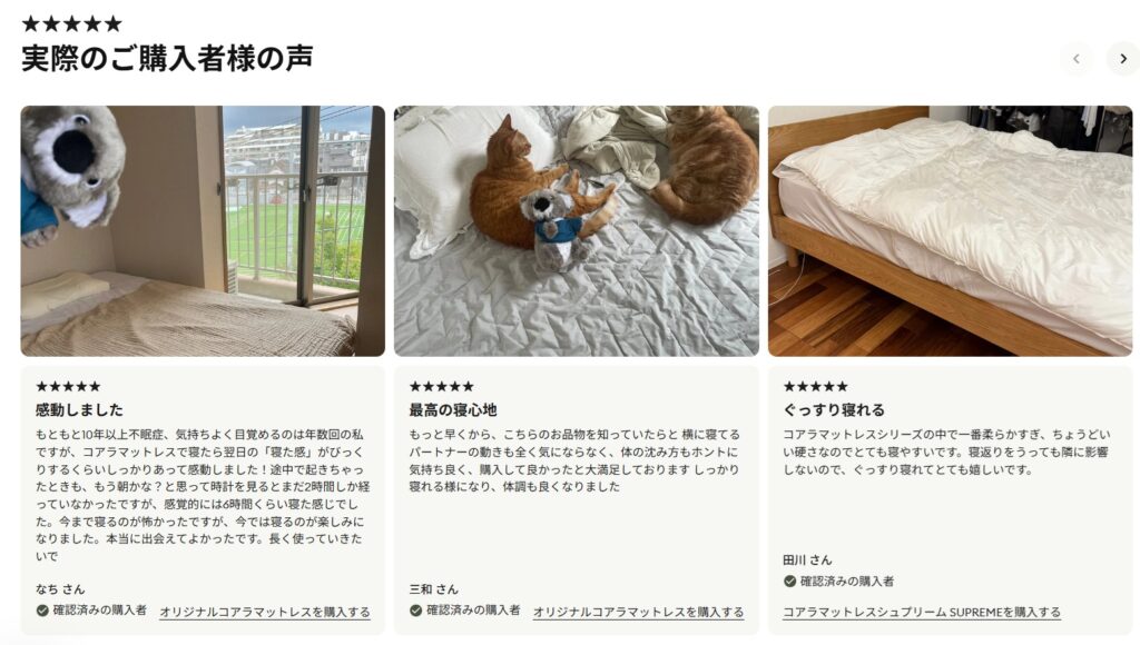 一方で、硬さの好みには個人差があります。ただし、120日トライアルで返品できるため、気軽に試しやすいのも大きなメリットです。